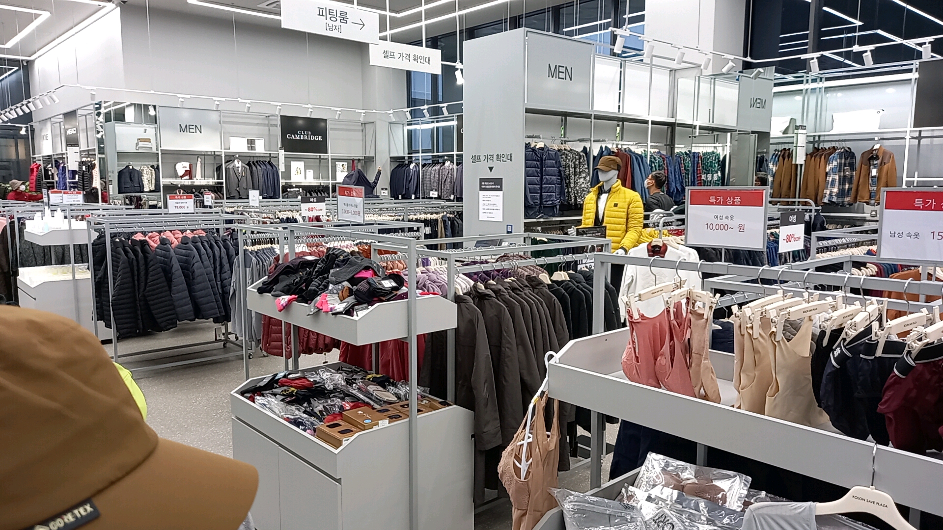 코오롱 스포츠 남성과 그 뒤에는 캠브리지 남성 코너가 있습니다.