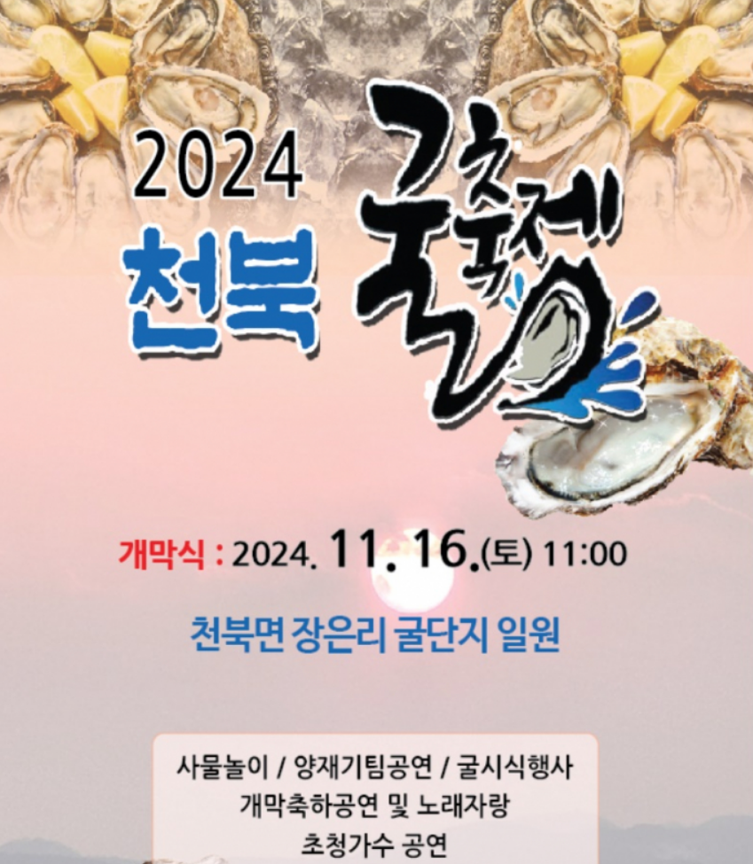 따라서 천북굴단지를 방문하기 전에 여행계획을 미리 잘 짜고 숙박업소를 예약을 해야 합니다. 이번 글에서 천북굴단지 숙박 추천 및 몇 가지 여행 팁을 정리해 보겠습니다. 천북굴축제 기간은 2024년에는 11월 16일~17일에 열렸지만 딱 정해진 기간은 아니고 매년마다 조금씩 달라지므로 확인하고 가셔야 합니다.